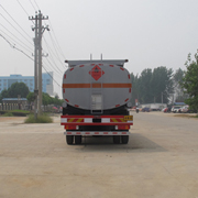 運(yùn)送介質(zhì)品名:汽油;介質(zhì)密度:720千克/立方米,類項(xiàng)號(hào):3;罐體有效容積:20.73立方米, 罐體外形尺寸(長(zhǎng)/長(zhǎng)軸/短軸)(mm):7900/2400/1620。防護(hù)材料:Q235A碳鋼,連接方式:左右側(cè)面以及后下部防護(hù)采用焊接連接,后部防護(hù)斷面尺寸(mm):110×50,后部防護(hù)離地高度(mm):530。前輪安裝盤(pán)式制動(dòng)器,安裝子午線輪胎,安裝帶ABS的底盤(pán)。發(fā)動(dòng)機(jī)BF6M2012-22E4,BF6M2012-20E4,BF6M2012-18E4對(duì)應(yīng)油耗值為(L/100km):41.0,41.0,41.0。ABS(ABS系統(tǒng)生產(chǎn)廠家1:WABCO,型號(hào):4460043200;ABS系統(tǒng)生產(chǎn)廠家2:長(zhǎng)春科密汽車制動(dòng)有限公司,型號(hào):CM4XL),安裝具有衛(wèi)星定位功能的行駛記錄儀。選用軸距(mm):1900+4500。