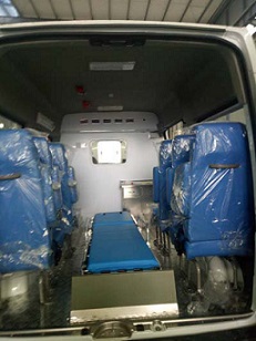 該車(chē)配備醫(yī)療器械柜, 氧氣瓶, 擔(dān)架, 消毒燈等救護(hù)專(zhuān)用設(shè)備。專(zhuān)用裝置:內(nèi)置擔(dān)架一副。選裝左側(cè)右側(cè)報(bào)閃燈, 選裝頂部換氣扇, 選裝側(cè)拉門(mén)踏板, 選裝異形頂部結(jié)構(gòu)時(shí)的高度為mm:2460。ABS系統(tǒng)控制器型號(hào):EV5051, 生產(chǎn)廠:博世汽車(chē)部件(蘇州)有限公司。 |
