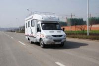自行式房車是采用依維柯都靈ⅴ歐三發動機專用底盤制造,發動機型號為SOFIM8140.43S3,排量2.8L渦輪增壓柴油發動機,功率為92千瓦,手動5檔變速箱,全盤式制動系統帶ABS,最高車速可達140公里/小時。整車外形設計簡潔、流暢,樸實無華的風格很鮮明。車身采用歐美房車傳統工藝的三明治式復合制板結構,車身外部材料為進口高強度玻璃纖維復合板材,具有高強度、高回彈、防腐性能好等優點。車身外飾可多種選擇,紅色、灰色和白色的三色條紋涂裝很有活力。 車廂內部分為五個區域:駕駛室、臥室、起居室、衛生間及廚房,通過合理的布局與精心的設計,每個區域都得到了有效的利用、并充分體現了人性化的設計原則。駕駛室設立了兩個座位,內部空間非常寬敞,所有的控制按鍵和操控桿都位于中控臺上方,并且都偏向駕駛員一側。車內可滿足4—6人居住、生活和娛樂,全國均可上藍色牌照,C1駕駛本即可駕駛它上路。