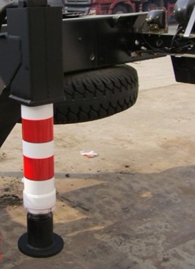 3、后支腿的伸縮,轉閥手柄打至左右缸位置,旋轉轉閥手柄至后支腿,操作支腿操作肛,左右后支腿同時伸縮。