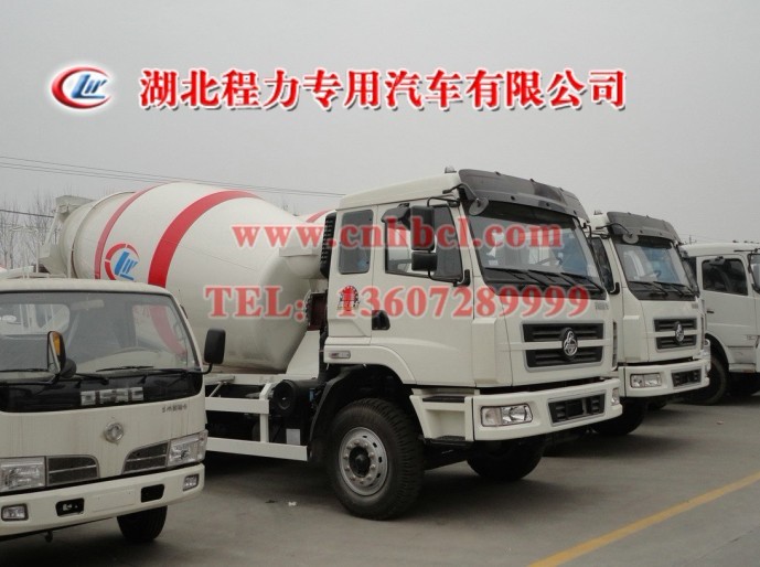 混凝土攪拌車:用來運(yùn)送建筑用混凝土的專用卡車;由于它的外形,也常被稱為田螺車。這類卡車上都裝置圓筒型的攪拌筒以運(yùn)載混合后的混凝土。在運(yùn)輸過程中會(huì)始終保持?jǐn)嚢柰厕D(zhuǎn)動(dòng),以保證所運(yùn)載的混凝土不會(huì)凝固。運(yùn)送完混凝土后, 通常都會(huì)用水沖洗攪拌筒內(nèi)部, 防止硬化的混凝土占用空間, 使攪拌筒的容積越來越少。