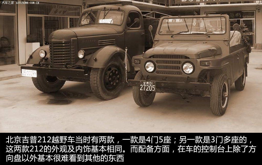 在20世紀60年代至80年代的十幾年間,BJ212那一身“綠軍裝”遍布全國。提起“北京吉普”恐怕無人不曉。四輪驅動的北京吉普BJ212是中國第一代吉普車,完全由中國人設計、制造,也是自主汽車中生產歷史最長的車款之一。