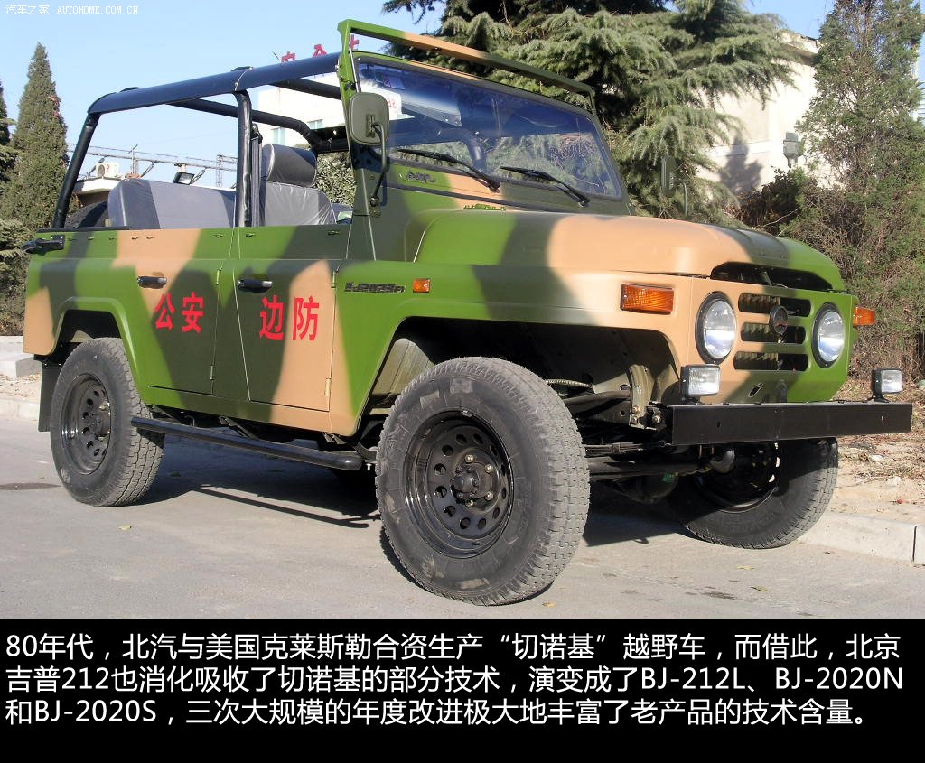 北京吉普212系列能紅遍大江南北數十載與北汽開拓創新的精神不無關系,80年代,北汽與美國克萊斯勒合資生產“切諾基”越野車,北京吉普212已盡顯老態,北汽在引進、消化、吸收“切諾基”先進技術的基礎上,對212不斷實施年度型改進與新技術的嫁接。僅僅幾年間,BJ-212一改過去的老面孔,先后演變為BJ-212L、BJ-2020N、BJ-2020S,三次大規模的年度改進極大地豐富了老產品的技術含量。
