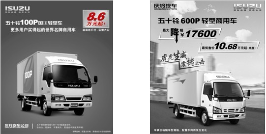 ■ 2010年伊始,五十鈴“領跑者”600P的價格一舉降到10萬元級,使100P、600P攜手成為性價比更高的五十鈴輕卡“雙雄”,打破原有的市場格局。