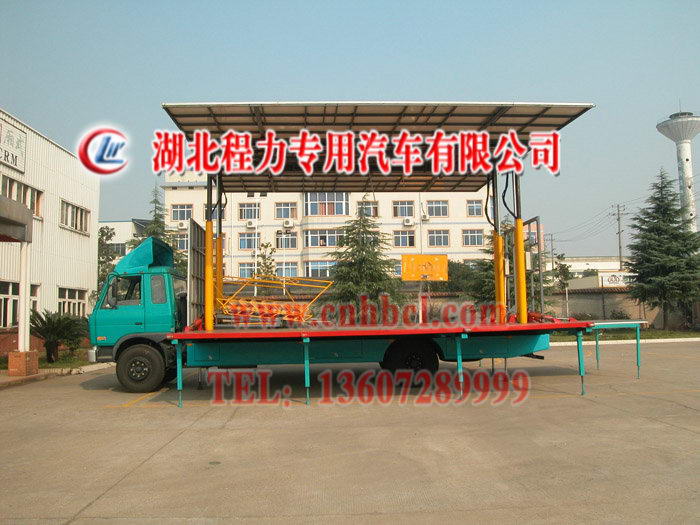 湖北程力專用汽車有限公司生產的舞臺車|翼展車是一種方便流動演出的、并可展開成為舞臺的特種汽車,它主要包括底盤部分和上裝部分兩答部分,上裝部分由頂板側板底板組成,而側板和頂板分別由四個液壓油缸控制展開即成舞臺的臺頂,底板展開四個液壓油缸控制成舞臺,省去傳統搭臺程序,省時省力操作簡便安全可靠,功能齊全,外觀美觀。該車已獲國家專利。歡迎廣大客戶親臨本廠參觀與洽談,咨詢電話:13607289999。