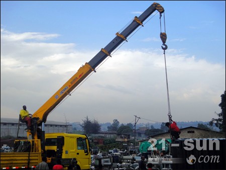 近日,在埃塞俄比亞某變壓器廠里,一臺SQ14SK4Q隨車起重機正在緊張有序地工作著,藍天白云下,一抹“徐工金”越發亮眼。(本文來自徐工)