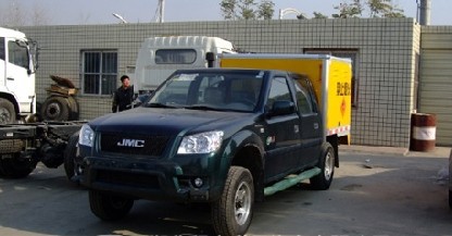 產品名稱: 江鈴皮卡爆破器材運輸車 公告批次: 223 總質量: 2375 額定質量: 245 整備質量: 1805 最高車速: 90(km/h) 接近離去角(°): 28/26 前懸/后懸: 805/1220 前排乘客(人): 2+3 彈簧片數: -/6 燃料種類: 柴油 輪胎數: 4 輪胎規格: 215/70R15C,215/75R15 前輪距: 1445 后輪距: 1425 軸數: 2 軸距: 3025 外形尺寸(mm): 5050/1690/2200 底盤型號: JX1020TS3 整車 江鈴汽車股份有限公司/-  貨箱尺寸(mm): 1420/1460/1250 發動機廠商: 發動機型號: 發動機排量(ml): 發動機功率(kw):         備注: 車廂頂部封閉,不可開啟。運送爆炸品的品名為:爆破炸藥,電引爆雷管等。運送爆炸品的類項號為:1.1B,1.1D。該車裝有行駛記錄儀。該車僅采用JX493ZQ5A型發動機。