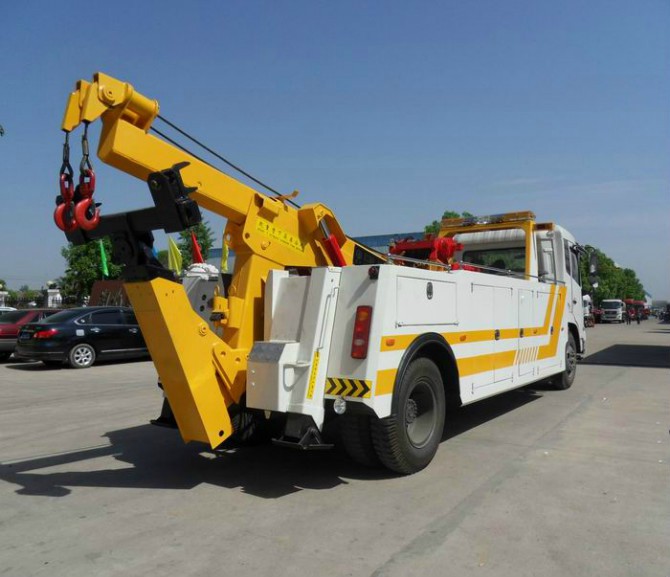 清障車用吊臂提升車輛的機會并不多,一般用于不平坦的路面或在障礙多的地面上。其工作程序主要包括以下幾個方面: