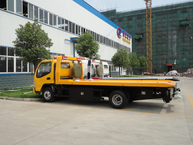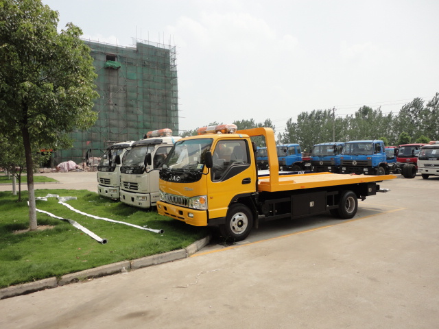 江淮一拖二平板清障車: 江淮清障車一拖二型,拖背兩用,配備長警燈,3P2A折疊式磨具沖壓板,板長5.6米.