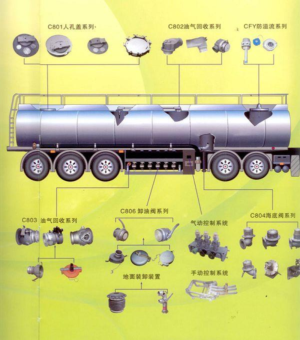 這個(gè)圖片可以很方便的看出來,油罐車可以分倉的,每一個(gè)倉都需要一鋁合金罐口(也稱為人孔),可以帶防溢漏探頭,海底閥,卸油接頭,海底閥,又稱緊急切斷閥,安裝于罐體底部,進(jìn)行下裝加油時(shí)使用,操作簡(jiǎn)便、節(jié)時(shí)、安全環(huán)保。