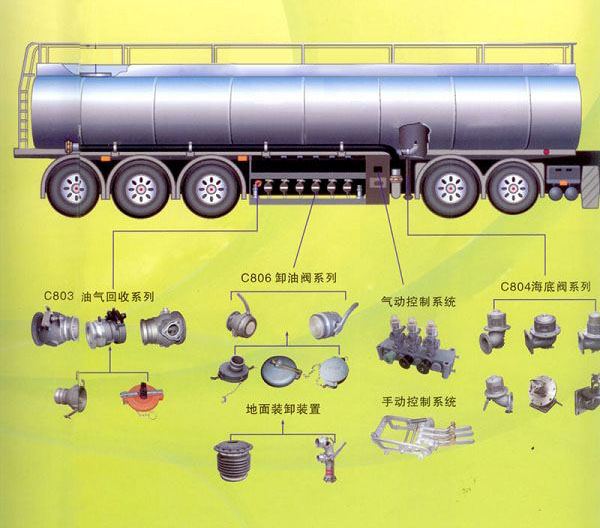 下裝油油罐車主要產(chǎn)品配件有:人孔蓋、油氣回收閥、油氣回收接頭、海底閥(緊急切斷閥)、卸油閥、防溢流傳感器等。產(chǎn)品具有設(shè)計(jì)合理,工藝先進(jìn),安全可靠,節(jié)能環(huán)保等優(yōu)點(diǎn)。