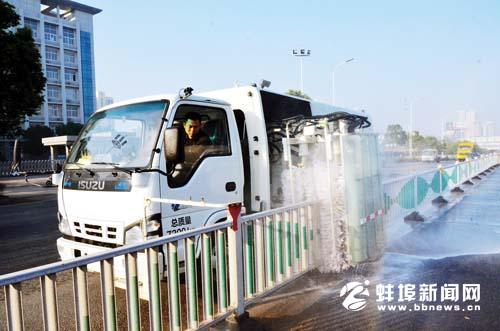 11月4日,珠城市首臺護欄清洗車正在東海大道上清洗護欄。近年來,珠城市先后多次購置先進環衛設備,提升了我市主要道路機械化清掃率,實現以機械化沖洗、清掃為主,人工保潔為輔的道路清掃作業新模式。(來源于:蚌埠新聞網)