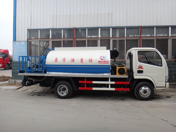 東風福瑞4方瀝青灑布車整車型號:CLW5072GLQ4 帶免征(免交購置稅),底盤配置:采用東風福瑞卡底盤,朝柴95馬力國四發動機,5檔變速箱,2噸前橋,3.5噸后橋,軸距3300mm,7.00-16尼龍胎,單排前翻駕駛室。(此車為新款車型)