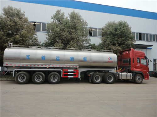 為了有更豐富的功用,程力專用汽車股份有限公司半掛鮮奶運輸車還可以采取分倉處理,一方面可以運輸不同的奶源進行區分,也能提高奶品品質。下面小編來詳細介紹一下這款三橋半掛鮮奶運輸車參數及配置:
