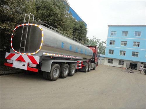 2、鮮奶運輸車罐體容積45立方,分5倉,罐體外部需作保溫層防止鮮奶變質,罐體內部用特種設備拋光,可充分保證鮮奶不掛壁,內部要求光潔、無銳角,在每個奶艙內加上cip(清洗裝置)。 鮮奶運輸車罐體整體分三層,罐體內膽,材質為304/2B食品級不銹鋼,板厚度5mm,中間部分為聚氨酯發泡保溫層,厚度為80mm,人孔部分聚氨酯發泡為60mm厚。保溫效果在24小時±1℃。罐體最外部為1mm厚304不銹鋼鏡面板,。 內膽部分有清洗裝置,清洗桿(或清洗球);清洗管(Φ38mm),旋轉清洗噴頭. 外部接上水源即可自動清洗罐體,造 型美觀,結構科學,自重輕,強度好,罐口采用特制雙層保溫不銹鋼罐口5個,5個2.5寸不銹鋼自流口卸料.
