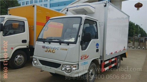 江淮好微冷藏車廂長3.1米,廂長3100*1520*1650mm,軸距:2600mm,采用柳州五菱LJ474Q3E2汽油發動機,功率:60.5KW,6.00-13輪胎,駕駛室不翻轉,帶空調,制冷溫度可達到-5度左右,駕駛室內可隨意調節,廂體采用內外玻璃鋼板材制作,厚度6-8CM。