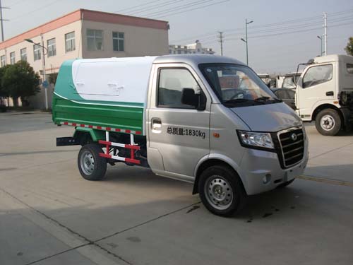 國四廣汽吉奧密封自卸式垃圾車采用國四GA465QED汽油發動機,60馬力,輪胎規格:165/70R14LT,軸距:2615mm,垃圾箱容積:2.5-3方,詳細參數及圖片: