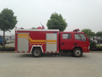 東風銳鈴水罐車消防車采用東風銳鈴中寬體,軸距3308,輕發D28D11-4DA,85Kw,車架130-192,前橋2.5后橋3.5,后橋速比6.142,輪胎7.00R16,單排、可翻,12V電路,動力轉向,斷氣制動,離合器助力,變速箱528(A92)。2噸水罐消防車整車圖片展示如下: