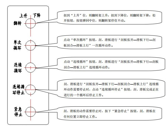 4)緊急停止遇到緊急情況,按下緊急停止按鈕,刮、滑板在任何位置立即停止工作。
