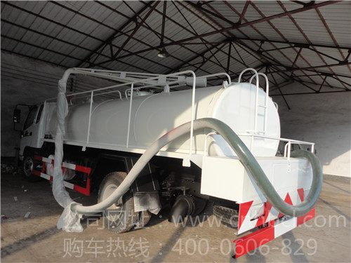 吸糞車專用部分由:取力器、傳動軸、真空泵、水氣分離器、油氣分離器、多路換向閥、吊桿、罐體、管網系統等組成,并裝有視糞管、洗手裝置、放糞閥、吸糞手柄(可360度旋轉)、真空壓力表,可自吸自排等功能。