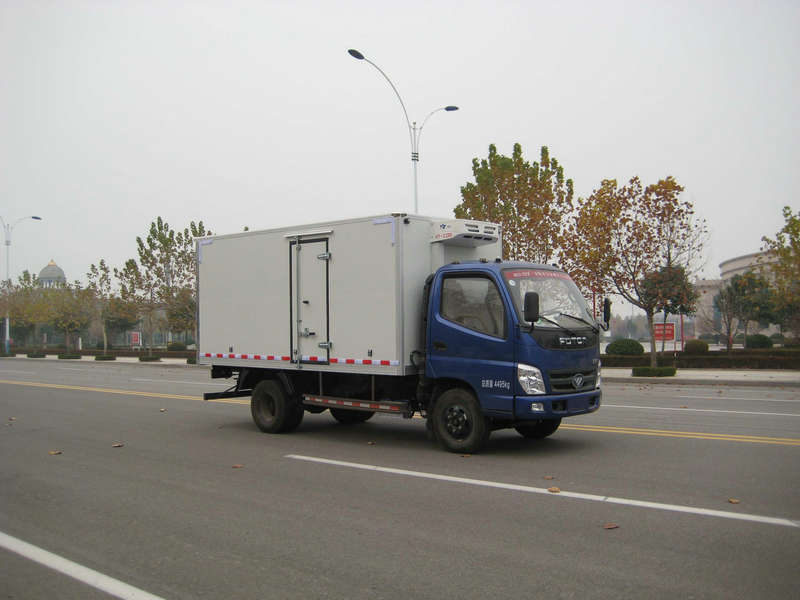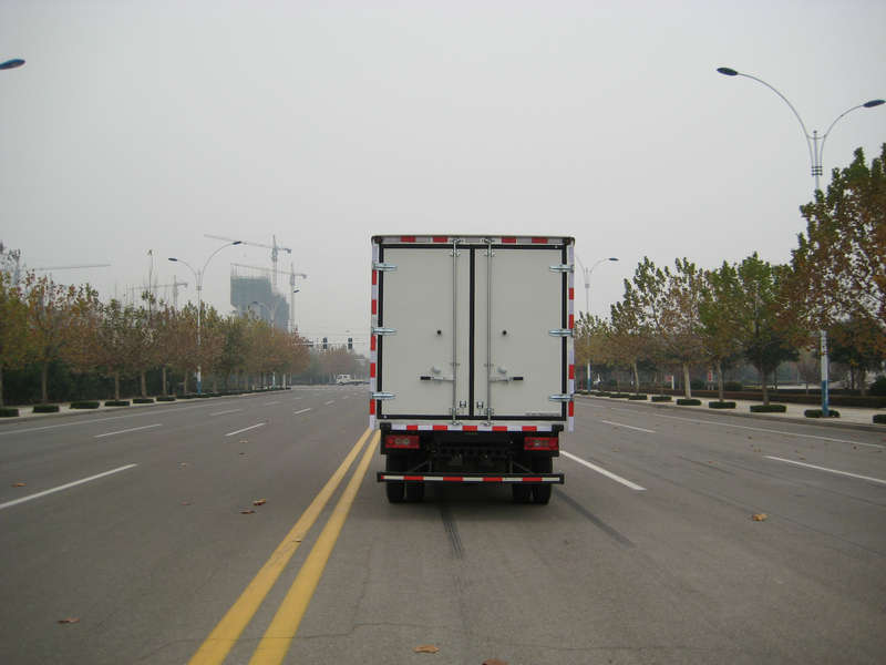 2、冷藏車廂體采用內(nèi)外玻璃鋼中間夾層保溫材料采用聚氨酯切片真空負壓一次復(fù)合成型;厚度8cm, 符合國家衛(wèi)生部頒布食品等級要求,具有強度高、耐腐蝕、抗老化、導(dǎo)熱性能低、無污染、不容易損壞等特點,底板為鋁合金防滑花紋板,保證底板保溫性能及底板的抗沖擊強度。雙后開門門框架全部采用玻璃鋼制成的整體框架,門板重量輕,防腐性能好。雙后門中縫帶斜度,開關(guān)方便。冷藏車廂體門邊框密封采用進口優(yōu)質(zhì)橡膠(三元乙丙)密封條進行密封,保證廂體保溫效果的穩(wěn)定性,門邊,門鎖及附件均為不銹鋼制作,廂體按肉鉤車標(biāo)準(zhǔn)制作,整體加固加強,廂體頂部加裝三條軌道;