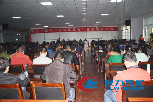 為2015年加強企業文化建設、培育干部職工愛崗敬業、堅持以誠信經營理念、企業信譽為先作為完成經營目標的重要保證。4日下午,程力公司“程力十周年“創誠信程力”讓利動員大會”在六號樓召開。