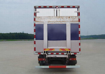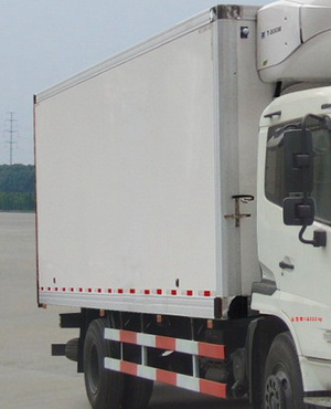 程力程力專用汽車股份有限公司生產銷售的冷藏車廂體采用內外玻璃鋼,中間夾層保溫材料采用聚氨酯切片真空負壓一次復合成型;厚度8cm, 符合國家衛生部頒布食品等級要求,具有強度高、耐腐蝕、抗老化、導熱性能低、無污染、不容易損壞等特點,底板為鋁合金防滑花紋板,保證底板保溫性能及底板的抗沖擊強度。雙后開門門框架全部采用玻璃鋼制成的整體框架,門板重量輕,防腐性能好。雙后門中縫帶斜度,開關方便。門邊框密封采用進口優質橡膠(三元乙丙)密封條進行密封,保證廂體保溫效果的穩定性,門邊,門鎖及附件均為不銹鋼制作。制冷機組根據自身需求選購不同機組,選裝機組不同,價格不同。
