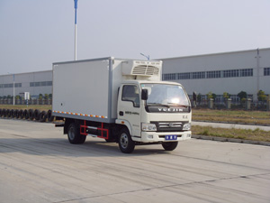 冷藏廂體采用內外玻璃鋼,中間夾層保溫材料采用聚氨酯切片真空負壓一次復合成型;厚度8cm, 符合國家衛生部頒布食品等級要求,具有強度高、耐腐蝕、抗老化、導熱性能低、無污染、不容易損壞等特點,底板為鋁合金防滑花紋板,保證底板保溫性能及底板的抗沖擊強度。雙后開門門框架全部采用玻璃鋼制成的整體框架,門板重量輕,防腐性能好。雙后門中縫帶斜度,開關方便。門邊框密封采用進口優質橡膠(三元乙丙)密封條進行密封,保證廂體保溫效果的穩定性,門邊,門鎖及附件均為不銹鋼制作。冷藏車制冷機組可以選擇獨立機組或非獨立機組。