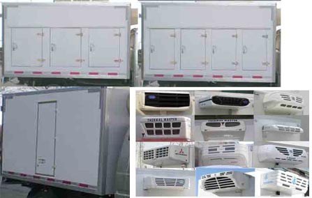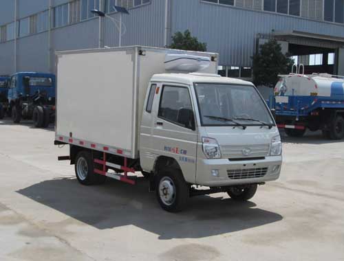 冷藏車保溫廂內尺寸(mm): 2800,2850X1500,1580X1500 (mm),冷藏廂體采用內外玻璃鋼,中間夾層保溫材料采用聚氨酯切片真空負壓一次復合成型;厚度8cm, 符合國家衛生部頒布食品等級要求,具有強度高、耐腐蝕、抗老化、導熱性能低、無污染、不容易損壞等特點,底板為鋁合金防滑花紋板,保證底板保溫性能及底板的抗沖擊強度。雙后開門門框架全部采用玻璃鋼制成的整體框架,門板重量輕,防腐性能好。雙后門中縫帶斜度,開關方便。門邊框密封采用進口優質橡膠(三元乙丙)密封條進行密封,保證廂體保溫效果的穩定性,門邊,門鎖及附件均為不銹鋼制作。