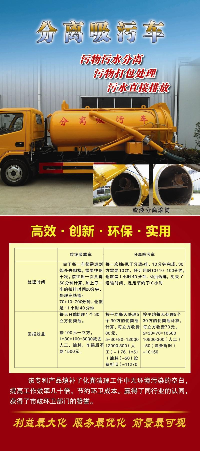 吸污車采用國內(nèi)技術(shù)領(lǐng)先的吸污專用泵,吸力大,吸程遠,特別適合用于下水道內(nèi)的淤積物的抽吸、裝運和排卸,尤 其是可吸下水道泥漿、淤泥、石子、磚塊等較大物體、含水量較小等物質(zhì)。抽滿污(糞)罐體時間:≤5min,吸程:≥10m。自吸自排,壽命長,工作速度快 ,運輸方便。吸污車的排放有加壓排放和自流排放兩種方式,吸污車自吸自排,后蓋可打開并自卸罐體中雜質(zhì),抽吸效率高、自吸、自排及直灌等特點,操作 快速、簡便 。適宜于大、中、小城鎮(zhèn)環(huán)衛(wèi)、市政部門使用。