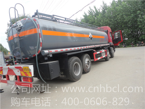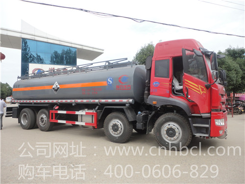 國四解放J6M新悍威20方腐蝕物品運輸車罐體配置:罐體襯塑后容積20立方,a、罐體采用武鋼優質碳鋼 數控卷板機一次成型 整體效果好 外形美觀,采用純進口聚乙烯材料 進行罐體內部防腐蝕襯塑工藝 內部有多道防波動隔板結構,嚴格進行高壓氣體試漏檢測,加強了罐體的強度、穩定性、 安全性、使行車過程更平穩 b、采用專用防腐蝕化工工藝,罐體關鍵零部件封頭 呼吸閥 球閥 均采用專業設備旋制 罐體 上面帶走道 圍板 嚴格按公告制作c、罐體不分倉,二個人孔,左右各1個3寸(型號:80)自流口,帶1個三寸四氟蝶閥即緊急切斷裝置,罐頂帶接酸盤及升降護欄,一個爬梯。d、罐體噴深灰色耐腐蝕油漆,“腐”字標志 安全告示 反光帶 反光條,帶罐體檢測報告及全部手續 。