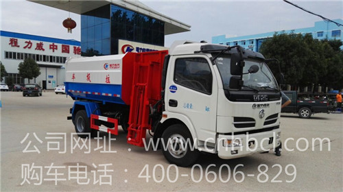 8方東風勁能側裝掛桶式垃圾車垃圾箱容積8方,采用武鋼國標碳鋼板制作,邊3mm,底4mm厚度,廂體右側掛桶提升裝置一套,通過液壓系統操作,可自動上下提升,傾倒垃圾桶內垃圾,后門手動鎖緊方式打開,自卸方式卸料,可通用全國各型號鐵掛桶。