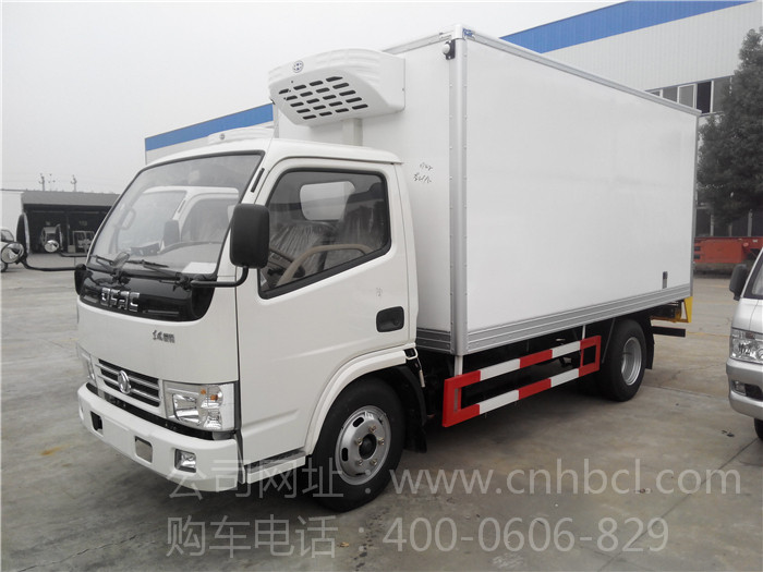 東風銳鈴冷藏車,選用常柴或東風生產的標準國四排放95/105馬力柴油電噴發動機,發動機型式為直列四缸,4×2驅動, 5檔變速箱,軸距3300mm,2噸前橋,3.5噸后橋,帶方向助力,不帶空調 ,選配汽剎或油剎鼓式制動器.配備東風原廠7.00尼龍胎或鋼絲胎。冷藏車箱體選用內外材料可以選用玻璃鋼、不銹鋼、鋁板等材料,夾層采用8厘米厚聚氨酯發泡材料,保溫性能良好。根據車輛用途可以選配肉鉤、通風槽等。冷機可以采用冷鮮機組、冷凍機組、獨立機組和非獨立機組,溫度可最低可達-18度。箱體兩側可選裝開門。可運送肉類、海鮮、蔬菜、雪糕、藥品等等。廂體尺寸4100×1910×1900(mm),額定載質量:550kg,可上藍牌。
