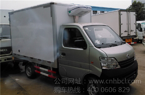 長安冷藏車,箱體容積5m³,長安原裝單排可前翻駕駛室,國四68馬力汽油國四發動機,5檔變速箱,內外材料可以選用玻璃鋼、不銹鋼、鋁板等材料,夾層采用8厘米厚聚氨酯發泡材料,保溫性能良好。根據車輛用途可以選配肉鉤、通風槽等。冷機可以采用冷鮮機組、冷凍機組、獨立機組和非獨立機組,溫度可最低可達-18度。箱體兩側可選裝開門。可運送肉類、海鮮、蔬菜、雪糕、藥品等等。廂體尺寸2550×1410×1490(mm),額定載質量:550kg,可上藍牌。