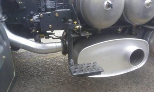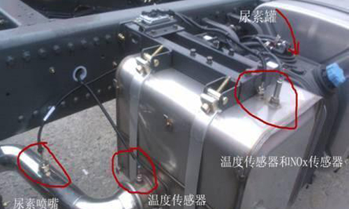 一是國四車與國三車加油裝置多一個尿素罐,也就是在油箱旁邊的罐罐。油箱左邊這個小罐,加尿素液有點(diǎn)麻煩要去專門的地方。按照咱家新政策的情況來看,目前大概100升油用5升尿素。二是國四車消聲器變化比較大,新加了尿素噴嘴和一些傳感器。