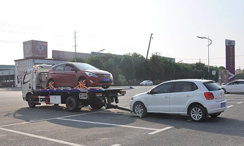 將清障車倒車至被托車前,倒車時盡可能使兩車對齊,夾角越小越方便操作。