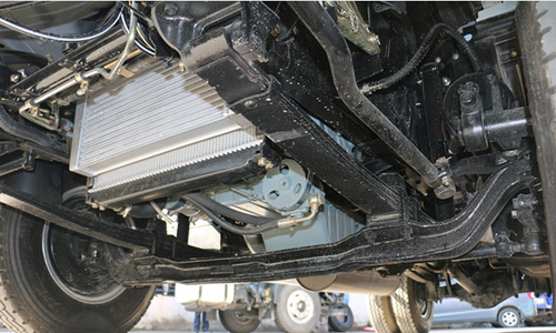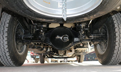 再看底盤部分,這款車采用了少片簧的鋼板彈簧懸掛,彈簧板數(shù)分別為3/3+4,在保持車身承載能力的同時也可以減少車身重量,是一個輕量化的設(shè)計。該車的還采用了氣剎制動,并且駐車制動搭配的是斷氣剎。