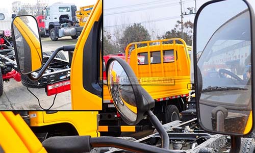 長條寬大型后視鏡配合矮門窗設計,有效的增大了駕駛室員的視角范圍,保障了行車安全。