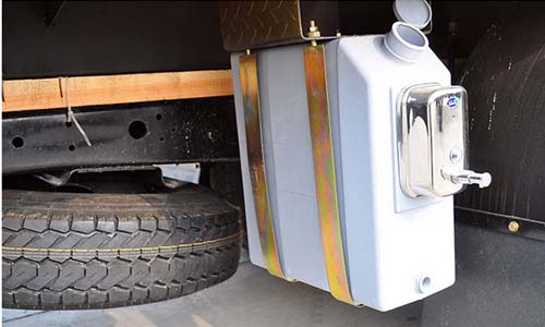 這款車還在車輛尾部的大梁旁邊加裝有1個洗手裝置,便于工作人員完工后能及時清洗,設計較為人性化。