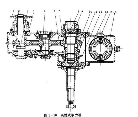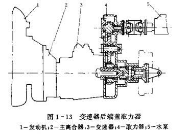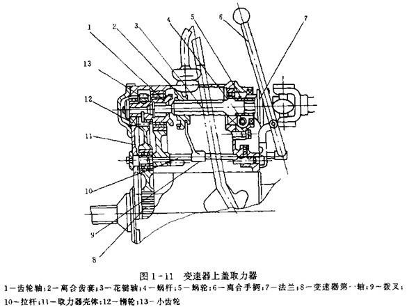 圖1-13為某種變速器后端蓋取力器,動力由變速器輸出軸取出。