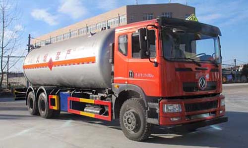 東風后八輪液化氣體運輸車也叫東風液化石油氣(丙烷)運輸車,整車型號:CLW5251GYQD4型液化氣體運輸車,底盤型號:EQ1250GZ4DJ3,該車罐體容積25.3立方米,運輸介質為丙烷,罐體材質為Q345R,整車尺寸:10720×2470×3420mm,罐體外形尺寸(長度×直徑)(mm):8060×2070;罐體直線段長度為(mm):6920,充裝系數0.42,設計壓力1.61MPa,總質量2500kg,整備質量14240kg,裝載質量10630kg。 標配:單出液、雙側裝卸、雙閥門箱、雙工具箱、安全閥、溫度計、壓力表、緊急切斷閥、滅火瓶、防靜電接地膠帶、鐵制擋泥板、帶ABS。 選配:雙獨立出液、軟管箱改水箱等。