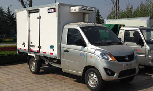 國五福田伽途冷藏車:伽途1600車身、柳州五菱LJ469Q-1AE9國五汽油發(fā)動機87馬力、5檔變速箱、175R14輪胎、100mm大梁,3070軸距。車廂體: FRP(即玻璃鋼。特點:質(zhì)輕而硬,不導電,機械強度高,耐腐蝕。) 中間附以發(fā)泡聚氨酯隔熱材料。