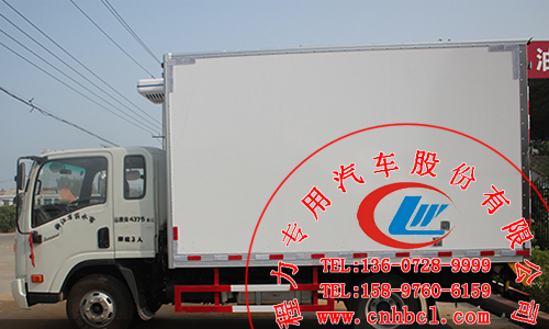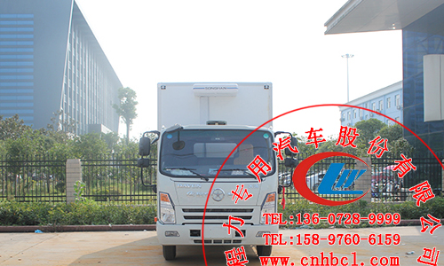 貨廂底板采用花紋鋁底板,具有一定的防銹、耐腐蝕性能,同時也具有良好的防滑效果,鋁板的強度也比其他材料要高很多;冷藏車機組裝在貨廂內部靠近駕駛室一端,冷藏機組布局合理使得立體均勻制冷更徹底,車廂內部還裝有照明燈,照明燈開關裝在后門開門處,方便實用。