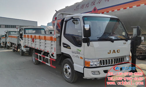 液化氣氣瓶運輸車廂體制作標準:廂體下端為雙層金屬骨架結構,外部為冷扎鋼板,內壁采用鋁合金板蒙面,夾層為隔熱阻燃材料填充。底部鋪有阻燃導靜電膠板,保證安全。廂體內部前面和側面裝有固定拉環,與捆綁帶使用捆綁貨物以避免移動。上端采用花欄式結構,有利于空氣流通。