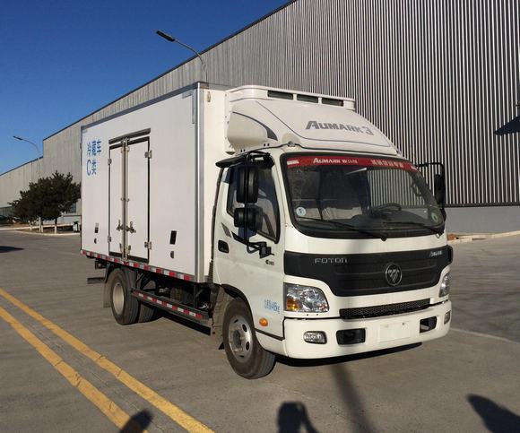 國五歐馬可廂長4.1米冷藏車底盤采用歐馬可1.8米寬駕駛室、康明斯117馬力國五排放標準,5檔變速箱、5噸后橋、7.00R16鋼絲胎、動力轉向、空調、定速巡航、ABS、