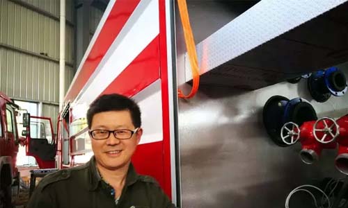 消防車專業廠的勞模、技術骨干萬順,文靜帥氣,面對鏡頭會心地笑了。