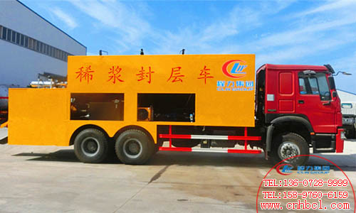 重汽后八輪稀漿封層車整車型號:CLW5251TFCZ5型稀漿封層車,底盤型號:ZZ1257N4347E1,外形尺寸:10325,10350,10625,10650,10900,10925X2500X3550(mm),總質量:25000kg,額定質量:7870kg,整備質量:17000kg,最高車速:80(km/h)。