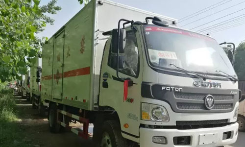 程力公司專業(yè)生產(chǎn)東風系列,江鈴系列,江淮系列,北汽奧鈴系列,福田時代系列,北汽歐曼系列,慶鈴系列,解放系列等爆破器材運輸車,廂體為雙層金屬骨架結(jié)構(gòu),外部為冷扎鋼板,內(nèi)壁采用鋁合金板蒙面,夾層為隔熱阻燃材料填充。設(shè)置對開門,如需安裝抗暴容器則增開側(cè)門,側(cè)壁設(shè)有防雨功能自然通風窗口,以使廂內(nèi)外空氣流動,廂體內(nèi)部做防靜電處理,廂體底部與廂內(nèi)前部鋪有阻燃導靜電膠板,并與底盤等電位連接,通過車輛后端的導靜電裝置與大地相連,可防止靜電火花的產(chǎn)生和車輛靜電及時釋放,提高車輛的安全性。廂體內(nèi)部前面和側(cè)面裝有固定拉環(huán),與捆綁帶使用捆綁貨物以避免移動,保證安全。其產(chǎn)品的可靠性、穩(wěn)定性、性價比在同行業(yè)中處于領(lǐng)先地位,被譽為炸藥運輸車的無冕之王。