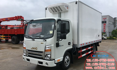 江淮帥鈴窄體4.2米冷藏車,整車型號:HFC5041XLCP73K2C3V,底盤型號:HFC1041P73K2C3V,準乘人數:2人,空調,方向助力,ABS,5檔變速箱,3360軸距,7.00R16鋼絲胎,總質量4495kg,整備質量3210kg,額定載質量1155kg。整車尺寸:5995×2110×3130(mm),廂體內尺寸:4015×1900×2000(mm),五十鈴HFC4DA1-2D發動機,88kw,120馬力,中控鎖,電動門窗,銳捷特HFC4DE1-1D發動機,112KW,156馬力,中控鎖,電動門,廂體內外玻璃鋼,8cm高密度聚氨酯保溫,底板為防滑花紋鋁板,后門鎖件為不銹鋼。制冷機組:-5度(保鮮)或-15度(冷凍)。兩排對接式導軌,內臟掛桿。