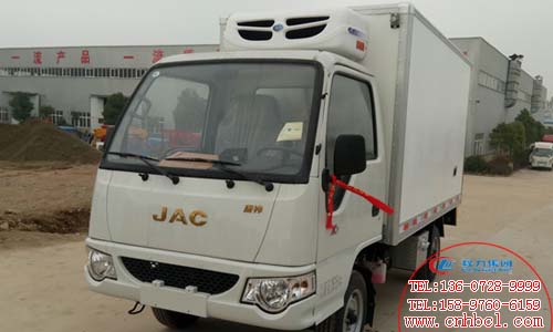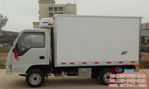 國五江淮康玲3.1米冷藏車整車尺寸:4850×1640×2580(mm),箱體內尺寸:3100×1520×1650(mm),藍牌,廂體內外玻璃鋼,8cm高密度聚氨酯保溫,底板為防滑花紋鋁板,后門鎖件為不銹鋼。制冷機組:-5度(保鮮)或-15度(冷凍)。